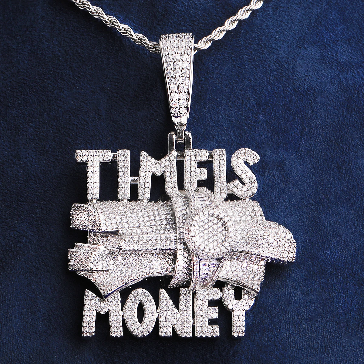 Elevate your style with the Time Is Money pendant, featuring dazzling 5AA+ VVS diamond-quality CZ stones. Expertly iced out for a bold, luxurious look, this pendant captures attention and reflects success. Perfect for making a confident statement, it blends high-end sparkle with everyday wearability to showcase your shine wherever you go.